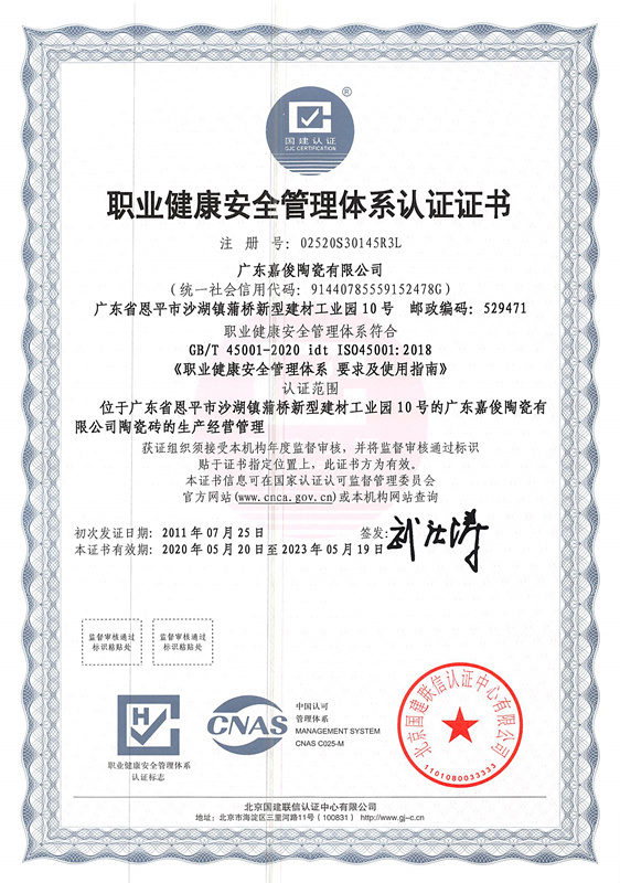 職業健康安全管理體係認證證書